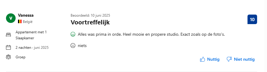 Studio La Rose verhuurt al enige tijd haar B&B via Booking.com. Via het platform hebben we al 200 reviews mogen ontvangen.
